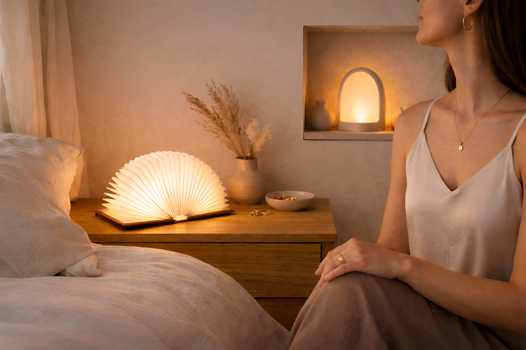 Soft, modern lighting designed for calm bedrooms, cozy corners, and warm interiors.
